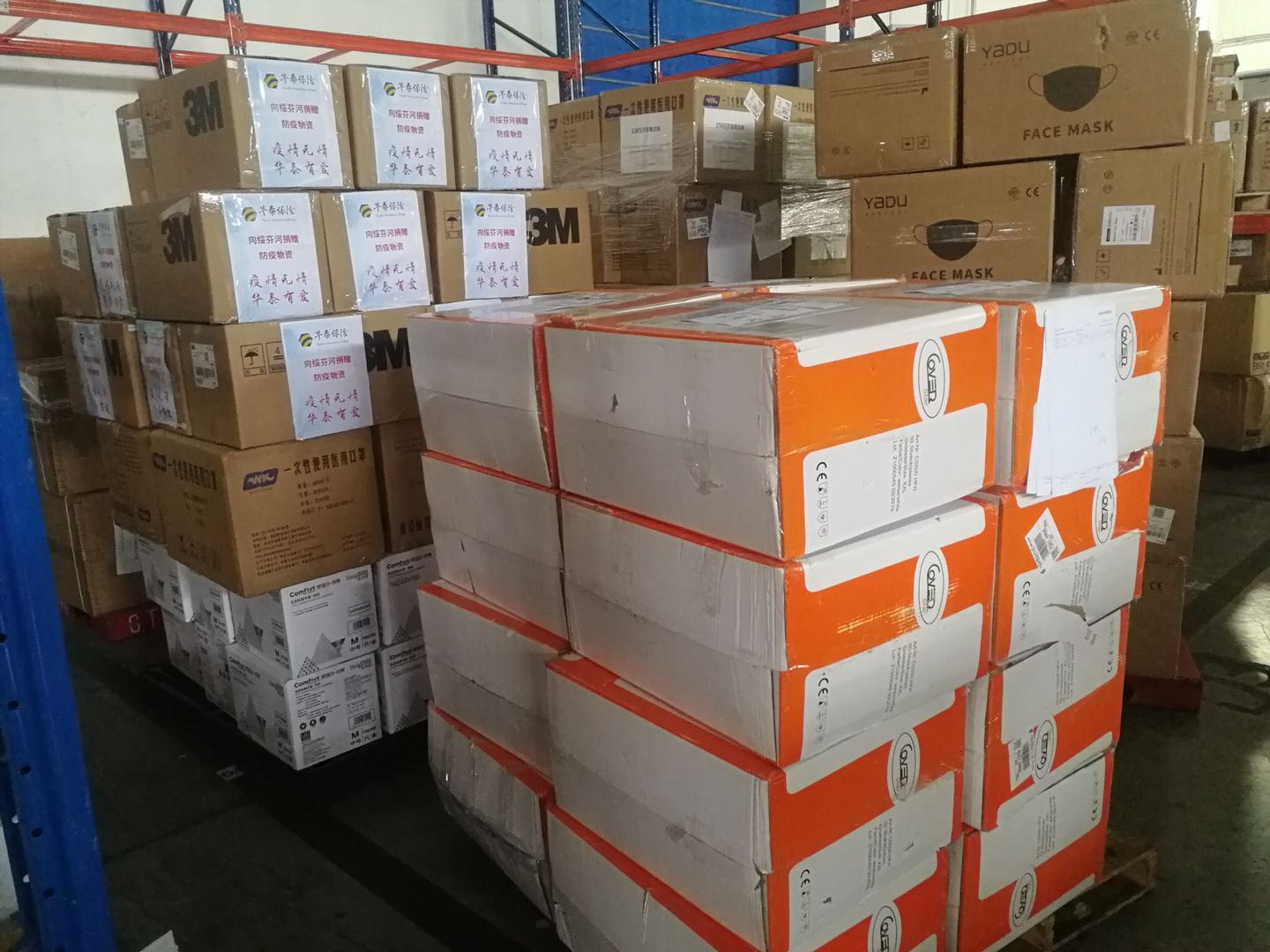 4月21日,华泰保险捐赠的抗疫物资抵达位于黑龙江省中俄边境的绥芬河市。这批物资包括10000个3M口罩和800件防护服,总价值超过30万元。