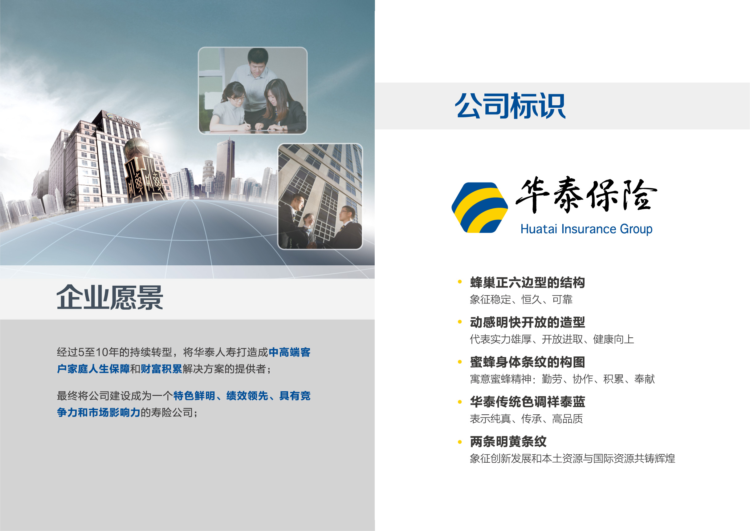 “华夏之一诺,泰然若九鼎”。强强联手打造的华泰人寿,尊崇保险核心价值,着力加强内控管理和风险防范,不断优化业务结构和提高业务品质,在向客户提供人生保障和财富积累解决方案的同时,也致力于为推动中国保险业发展和新时代社会建设做出应有的贡献。