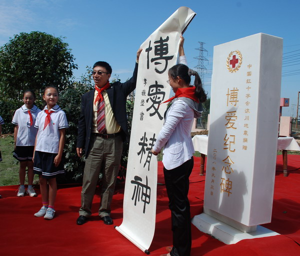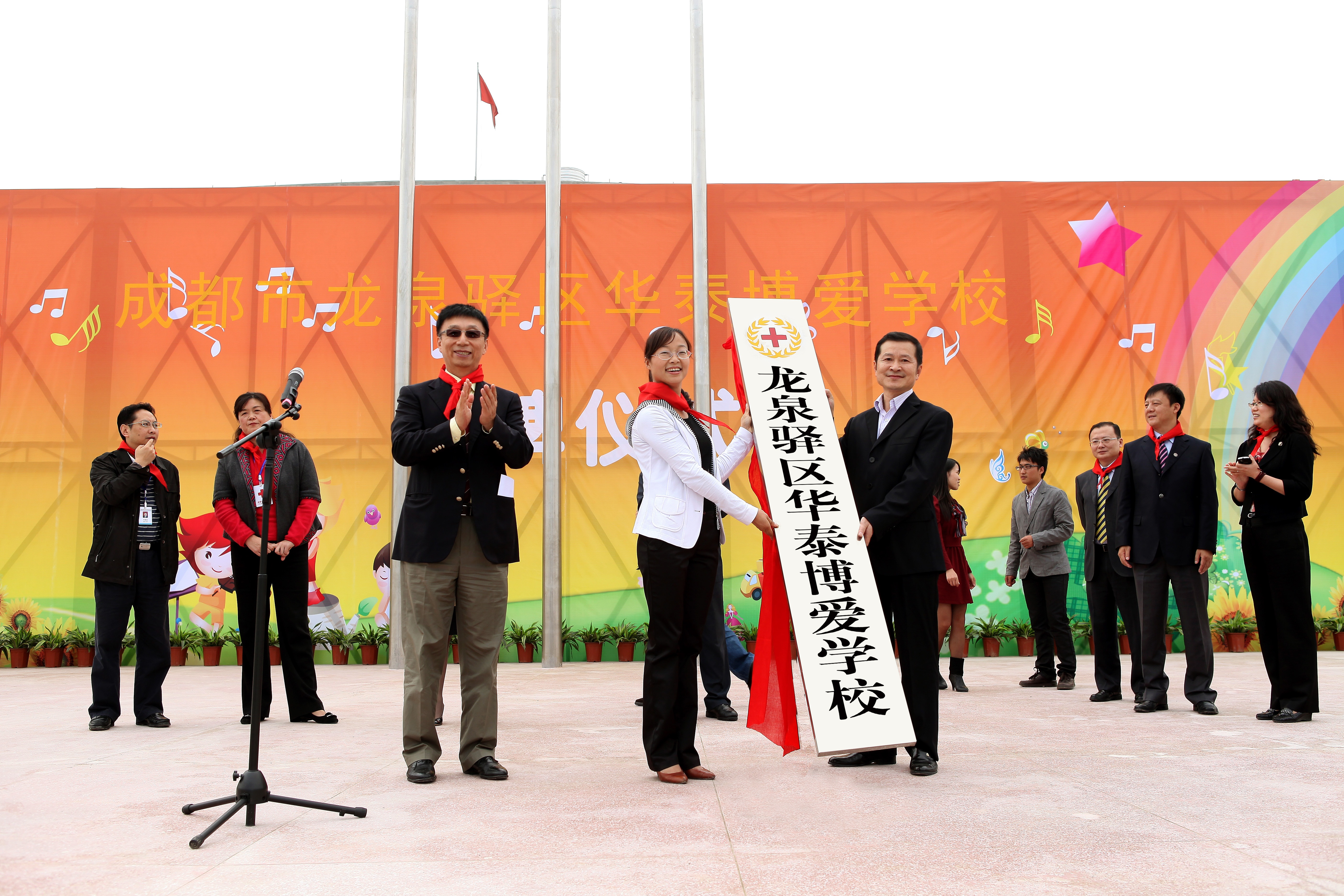 2011年9月29日上午,华泰保险集团董事长王梓木、副总经理张博江等一行人在华泰财险四川省分公司与华泰寿险四川省分公司的领导和员工的陪同下,来到成都市龙泉驿区华泰博爱学校,参加了学校的落成揭牌典礼。董事长一行的到来受到了区教育局、红十字会及学校师生们的热烈欢迎。王梓木董事长与龙泉驿区教育局局长宁望成一同为“龙泉驿区华泰博爱学校”揭牌,为“博爱纪念碑”揭碑。